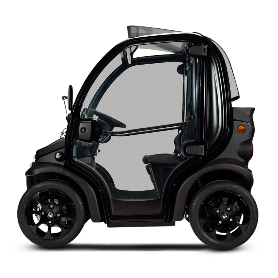 Points clésBiro Small : le quadricycle électrique le plus compact du marchéLa Biro Small est une microcar électrique conçue pour la ville et les trajets quotidiens. Compacte, maniable et dotée d’une autonomie d’environ 100km, elle offre une solution de mobilité alternative et écologique.Son rayon de braquage exceptionnel et ses dimensions réduites en font la VSP la plus pratique à stationner.MoteurAvec ou sans permisCette VSP n’en est pas vraiment une puisqu’elle est disponible en deux versions:-une version sans permis, la Biro Small L6e, pouvant être conduite à partir de 14 ans avec unpermis AM. Cette version offre une vitesse maximale de 45km/h et un moteur de 3.3 kWh. Son autonomie de 80 km (cycle WMTC).-Une version L7e disposant du même moteur poussé au maximum et permettant d’atteindre 60 km/h mais perdant un peu en autonomie avec 90 km. Il est nécessaire de bénéficier d’un permis B ouB1 pour conduire cette version.Équipée d’unmoteur électrique puissant et silencieux, le Biro offre des performances surprenantes pour un véhicule de sa catégorie. Accélérations franches et reprises énergiques vous permettront de vous faufiler aisément dans la circulation.BatterieAvec ou sans batterie amovibleCette version de la Biro Small est équipée d’une batterie fixe mais il existe une version avec une batterie amovible sur roulette (la version avec batterie amovible dispose d’une autonomie de 80 km ).La recharge se fait simplement sur une prise domestique standard ou surune borne de recharge publique.Informations techniquesLa Biro Small: pratique et économiqueLa Biro Small mesure 179cm de long pour 111cm de large et 157cm de haut.Elle dispose du meilleur rayon de braquage de la catégorie avec 5.5m.Avec seulement 350 kg sur la balance, elle propose des accélérations franches.ÉquipementUn Design épuré et pratique dans la Biro SmallLa marque Italienne propose la possibilité de rouler sans les portes si vous le souhaitez.Son châssis en acier tubulaire indéformable vous protègera vous et votre passager.Avec Biro vous parcourez 80 km pour moins de 3€ et les frais d’entretien sont bien moins élevés qu’avec une voiture traditionnelle.
