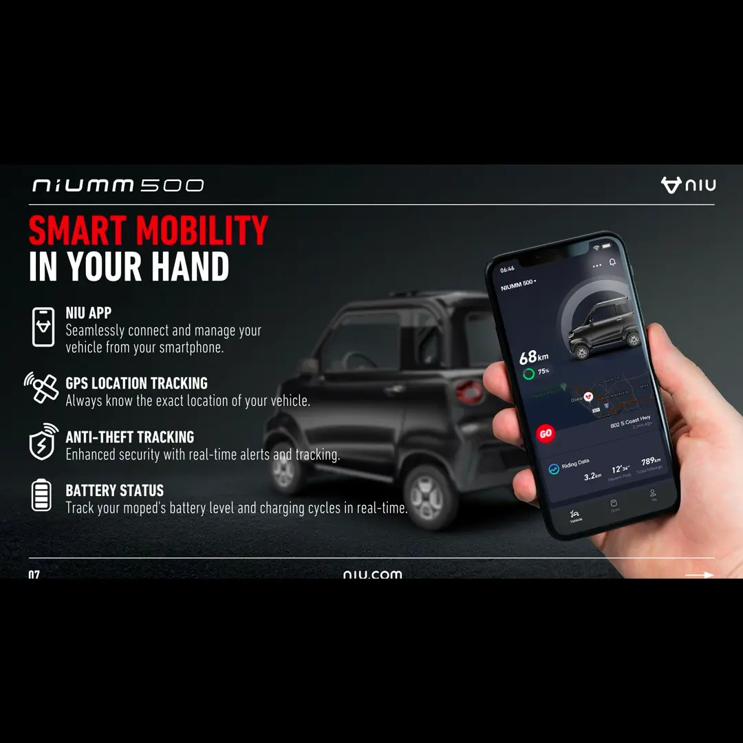 Version avec chargeur pour batteries amovibles inclus. La NIUMM 500 marque l’entrée remarquée de NIU sur le marché des voitures sans permis électriques. Issu du savoir-faire reconnu de NIU dans le domaine des scooters électriques, ce véhicule biplace se positionne dans la catégorie L6e des quadricycles légers en Europe. Conçu pour la mobilité urbaine, ce véhicule innovant allie design moderne, technologies avancées et praticité.
