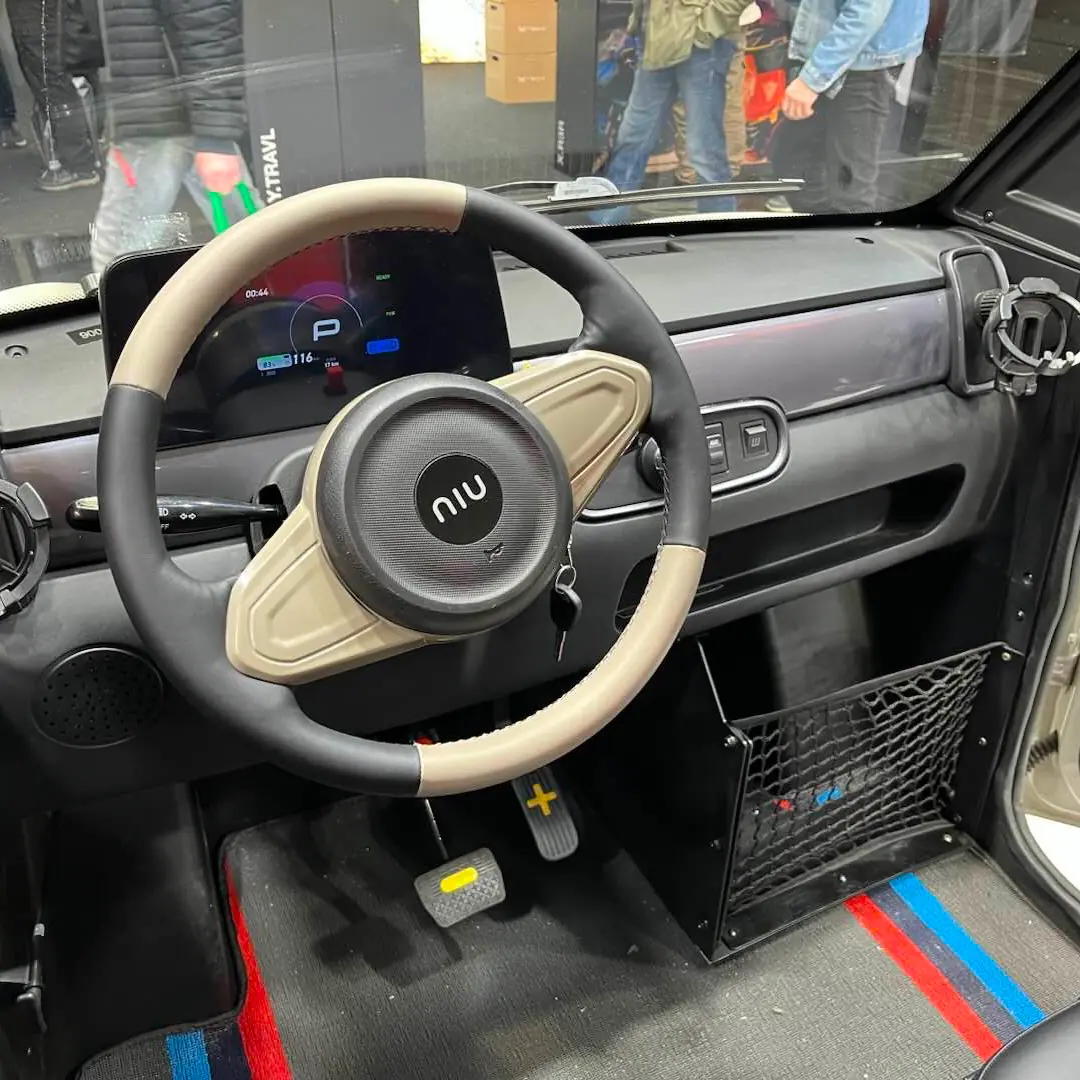 Positionnement de la NIUMM 500La NIUMM 500 s’inscrit dans une dynamique de mobilité urbaine innovante, où la praticité et l’accessibilité sont primordiales. Conçue pour répondre aux besoins des citadins, cette voiture sans permis biplace offre une solution de transport adaptée aux déplacements quotidiens dans les zones densément peuplées. NIU, déjà leader dans le domaine des deux roues électriques, mise ici sur une microcar permettant d’occuper une très petite place de stationnement tout en offrant un confort supérieur grâce à des équipements comparables à ceux des voitures traditionnelles. Ce véhicule est accessible dès 14 ans avec lepermis AM. Elle combine des éléments de design inspirés des voitures traditionnelles et des technologies issues du monde des deux-roues. La NIUMM 500 pourrait s’imposer comme un choix de mobilité moderne, tourné vers l’avenir, sans pour autant sacrifier l’aspect ludique et la praticité.NIUMM 500 : un moteur de 10 kW en crêteAu cœur de la NIUMM 500 se trouve un moteur électrique de5 kW, capable de délivrer une puissance de pointe allant jusqu’à10 kW. Cette motorisation, identique pour les deux versions, assure une accélération vive et une conduite fluide en milieu urbain. La transmission automatique permet une prise en main facile et intuitive, éliminant le besoin de changer de vitesses. Malgré une vitesse maximale limitée à 45 km/h – en conformité avec la réglementation des quadricycles légers – le moteur offre des performances suffisantes pour affronter les trajets en ville et même dans les zones périurbaines. La technologie employée garantit un entretien minimal et une efficacité énergétique optimale, réduisant ainsi la consommation et les coûts d’utilisation.Différentes options de batterieL’un des points forts distinctifs de la NIUMM 500 réside dans ses options de batterie, qui permettent de répondre à différents besoins en termes d’autonomie. Vous pouvez charger les batteries directement sur le véhicule ou en retirant les batteries pour charger à la maison (15kg par batterie).La version à batterie amovible, inspirée des cyclomoteurs électriques NIU NQiX, propose une autonomie d’environ 70 km. Cette configuration est particulièrement avantageuse pour les citadins ne disposant pas d’un garage ou d’un parking muni d’une prise 220V, car elle permet de retirer les batteries et de les charger facilement à domicile ou dans un appartement. Les batteries sont au nombre de deux, chacune disposant d’une capacité de 72V / 28Ah. En plus de ces deux batteries, il est possible d’ajouter 2 batteries supplémentaires, portant le nombre d’accumulateurs à 4, et doublant de ce fait l’autonomie maximale. La batterie supplémentaire est au tarif de 760€.Équipements et confort IntérieurL’intérieur de la NIUMM 500 est conçu pour offrir un confort maximal tout en optimisant l’espace dans une configuration la plus compacte possible. Elle bénéficie d’un habitacle soigné, doté d’équipements modernes et ergonomiques. Parmi ceux-ci, on retrouve une fermeture centralisée, des vitres motorisées et un système de chauffage. Le tout assureune ambiance agréable, même par temps froid. Le véhicule intègre également un tableau de bord numérique qui affiche en temps réel des informations essentielles comme l’autonomie restante, l’état de charge et la vitesse. Les commandes au volant sont disposées de manière intuitive. Ceci vous garantit une prise en main facile, même si vous êtes un conducteur débutant. En somme, la NIUMM 500 propose un intérieur pensé pour allier confort, praticité et modernité, répondant ainsi aux exigences des usagers urbains.Technologies connectées et systèmes de sécuritéLa NIUMM 500 intègre un ensemble de technologies connectées destinées à améliorer l’expérience de conduite et à renforcer la sécurité. Le véhicule est équipé d’un écran central qui permet de contrôler aisément les fonctionnalités du véhicule, telles que l’indicateur d’autonomie et le mode de conduite. La connectivité Bluetooth assure également la synchronisation avec les smartphones avec diverses informations comme l’autonomie restante, la geo localisation du véhicule en temps réel ou encore une alerte en cas de mouvement. En termes de sécurité, la NIUMM 500 offre des vitres électriques, des serrures centralisées, ainsi qu’un pare-brise arrière électrique. Ces dispositifs, combinés à une conception robuste et à une carrosserie bien isolée, garantissent une protection optimale des occupants.En ville, la NIUMM 500 est maniableComme toutes lesvoitures sans permisélectrique, la NIUMM 500 se démarque par sa maniabilité exceptionnelle, un atout majeur dans les environnements urbains. Sa taille réduite et son empattement optimisé lui permettent de se faufiler aisément dans le trafic dense et de se garer dans des espaces très étroits. La configuration hybride, combinant des éléments de cyclomoteur et de voiture, permet de bénéficier d’une conduite sportive tout en conservant une grande stabilité. Les commandes traditionnelles, associées à une transmission automatique, garantissent une prise en main rapide et intuitive. Ces qualités font de la NIUMM 500 un choix idéal pour ceux qui recherchent un véhicule urbain capable de conjuguer agilité, sécurité et confort, même dans les situations de circulation les plus exigeantes.